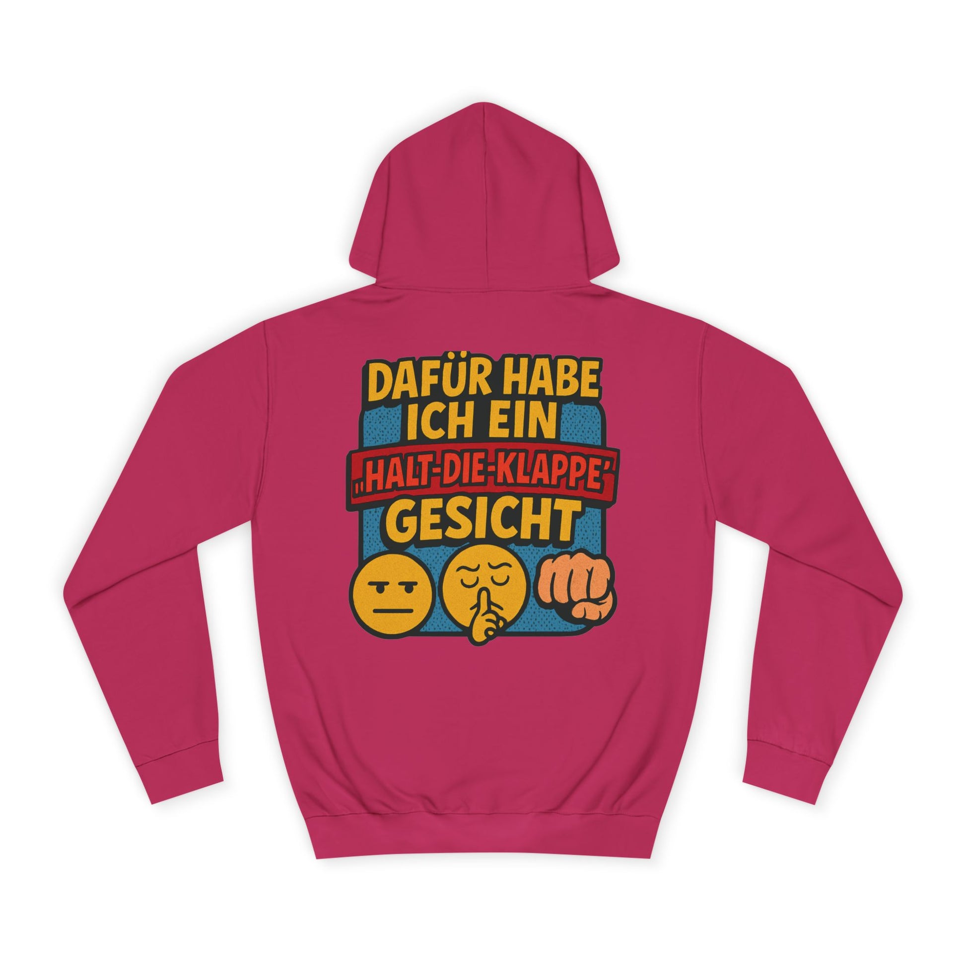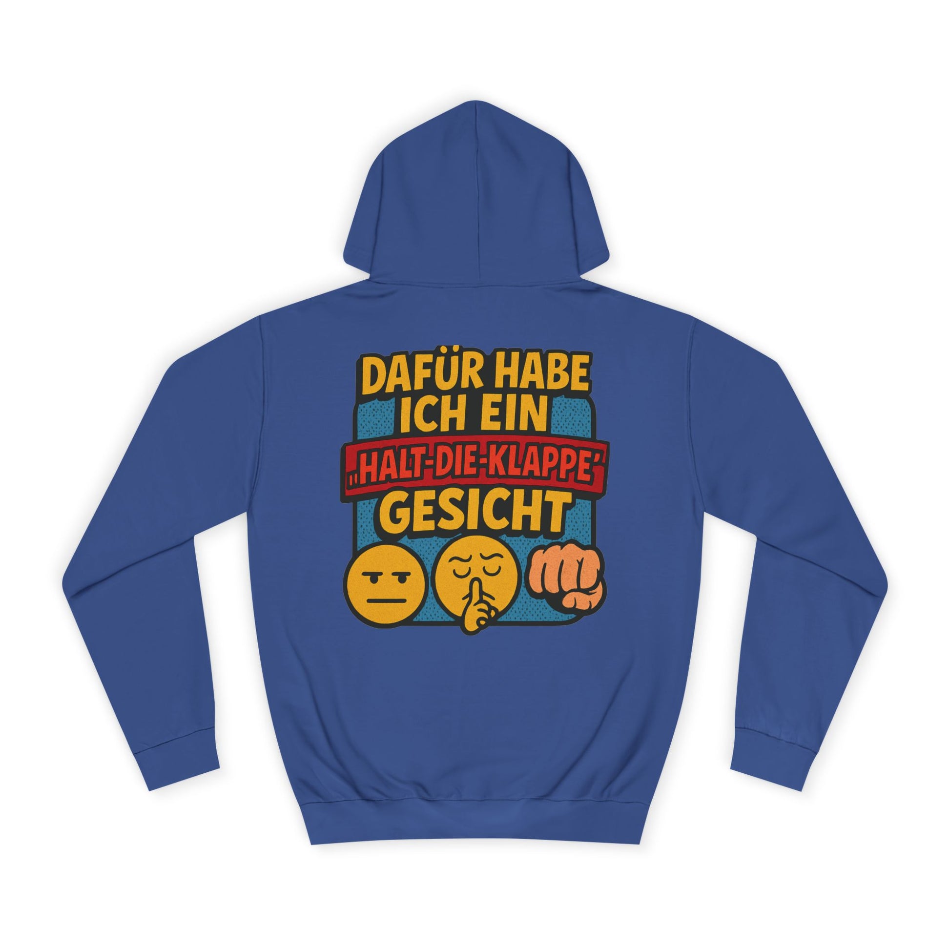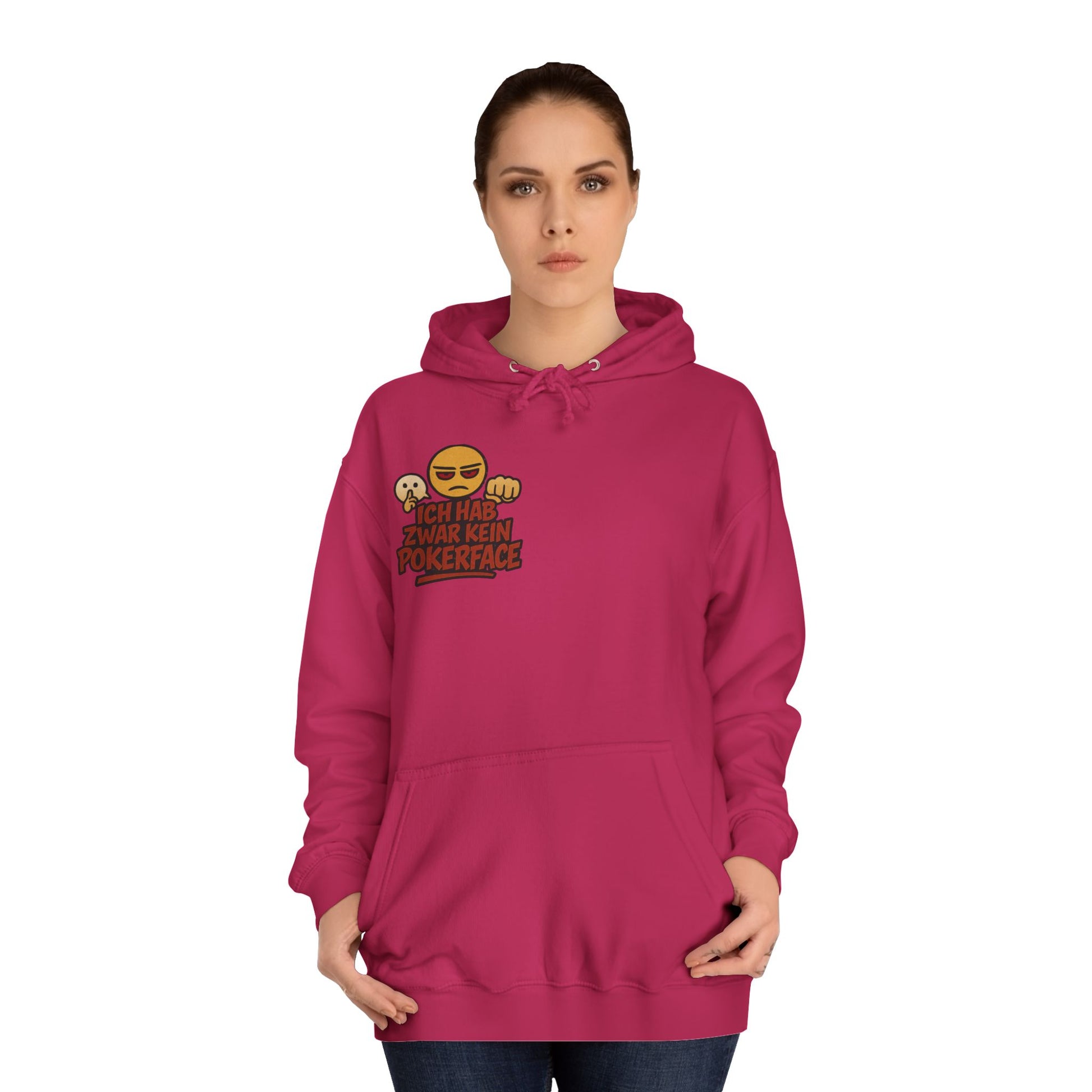 This hoodie features the bold German text, translating to:Β "I may not have a poker face, but I have a shut-up face." Paired with the expressive emoji, it's immediately relatable and humorous to German speakers. Itβs a must-have for those who appreciate witty, blunt German sarcasm and comfy streetwear.