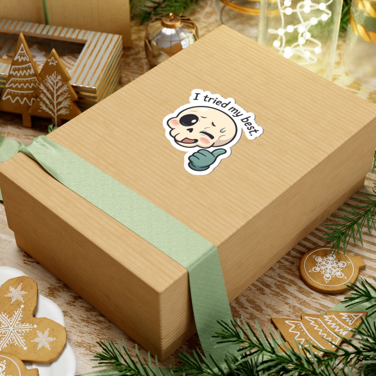 The "I Tried My Best" design features a cute, hand-drawn-style kawaii skull in a high-quality, long-lasting decal format.